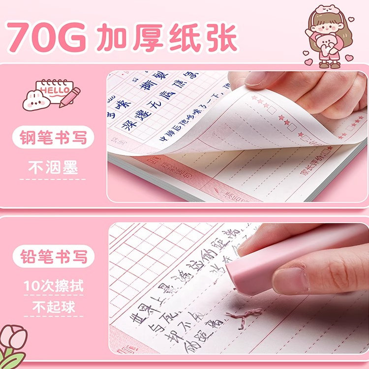 新款卡通读书笔记本田字格本好词好句生字读后感受摘抄本阅读记录本B5加厚护眼课堂笔记小学生语文拼音写字本