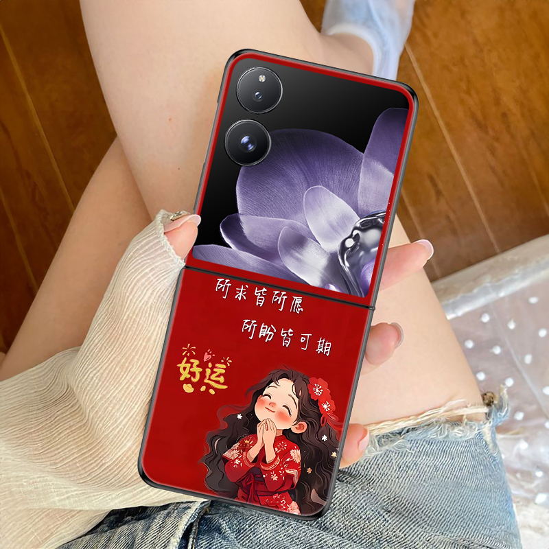 适用小米MIXFlip手机壳折叠屏MIX Flip2新年款高颜值防摔保护套好运女孩所求皆所愿网红简约小创意个性喜庆潮