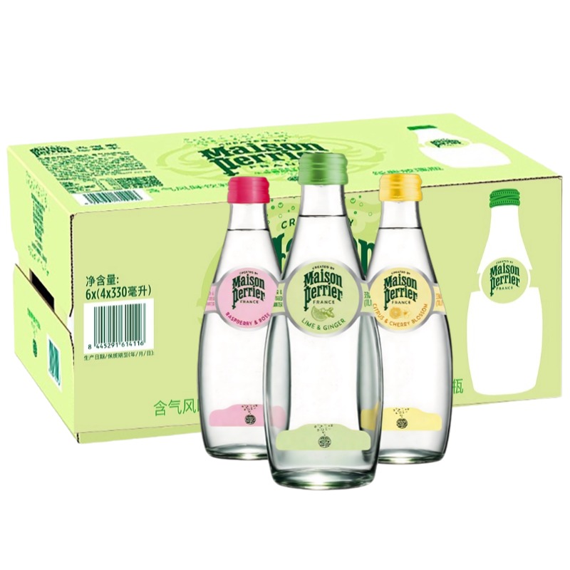 法国巴黎水新品330ml整箱生姜青柠多口味含气矿泉水佐餐水气泡水