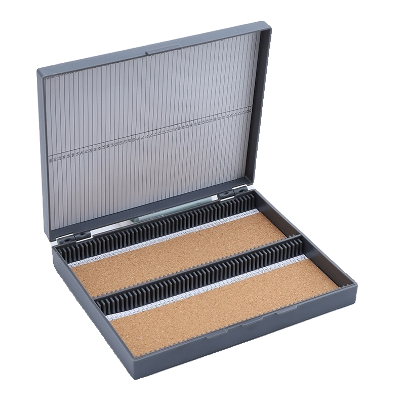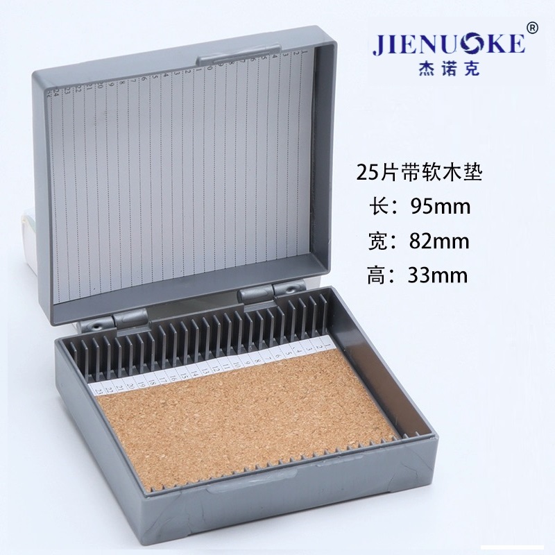 玻片盒灰色避光25/50/100片加厚/含软木垫ABS塑料实验病理切片盒