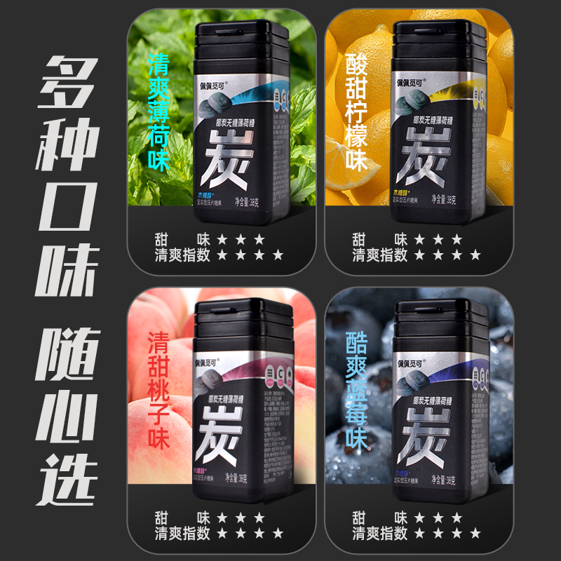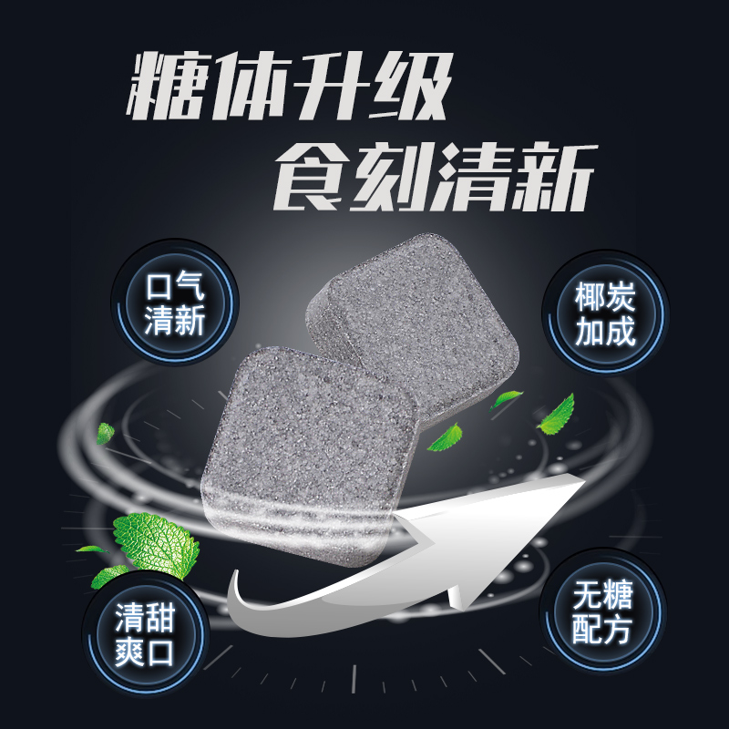 椰炭木糖醋无糖薄荷糖维C清新口气水果味清凉爽口香糖果便携零食
