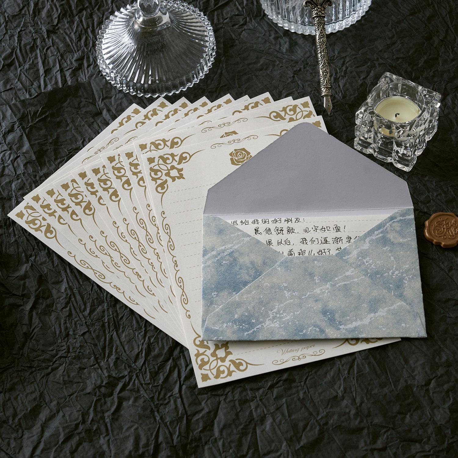 信纸信封套装高级感鎏金浮雕纹理加厚简约送男女友手写情书火漆信封欧式精致感谢信书信纸复国风高颜值明信片