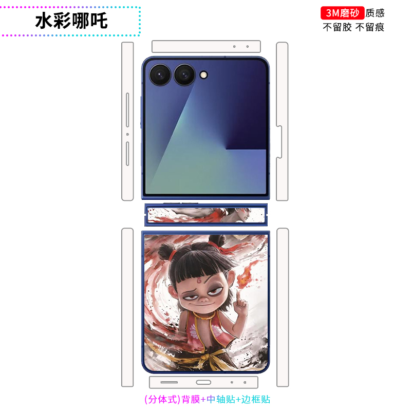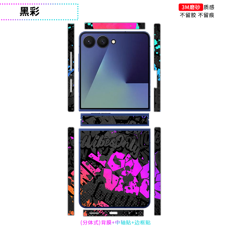 适用于三星Zflip7/6/5/4/3全包边背膜折叠手机w24flip中轴后膜改色彩膜flip7FE
