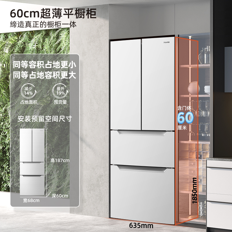 美的M60小机皇520超薄零嵌入式冰箱家用双系统法式多门四门双开