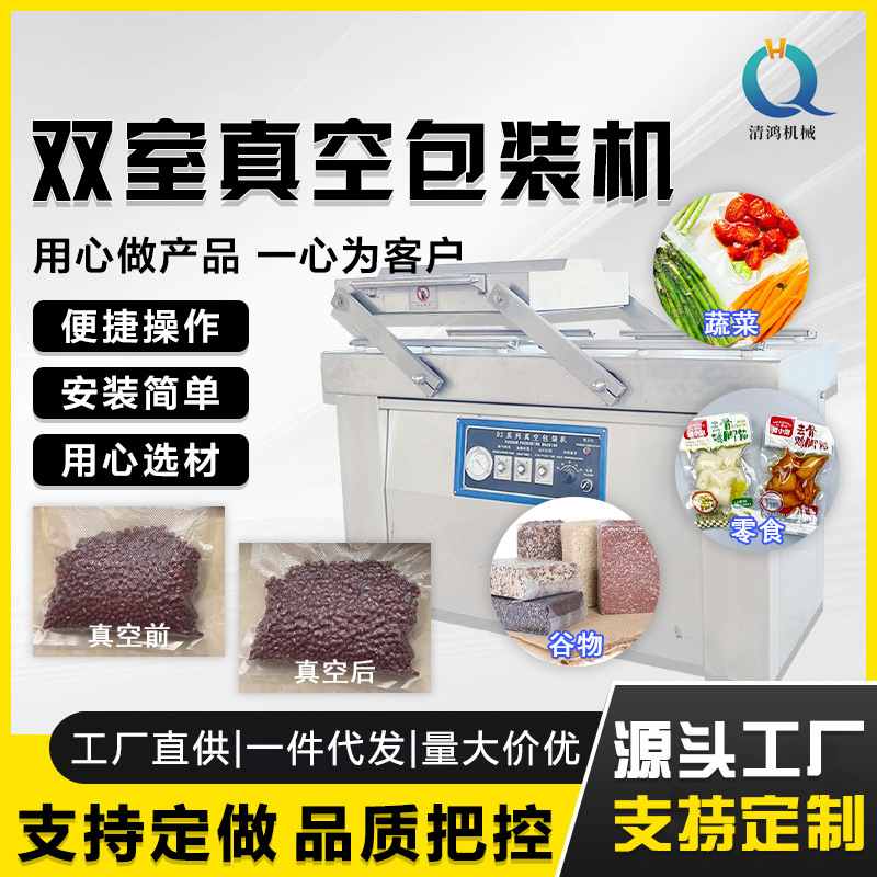 腊肉香肠双室真空包装机 卤鸡加工真空封口机 干湿两用年糕包装机