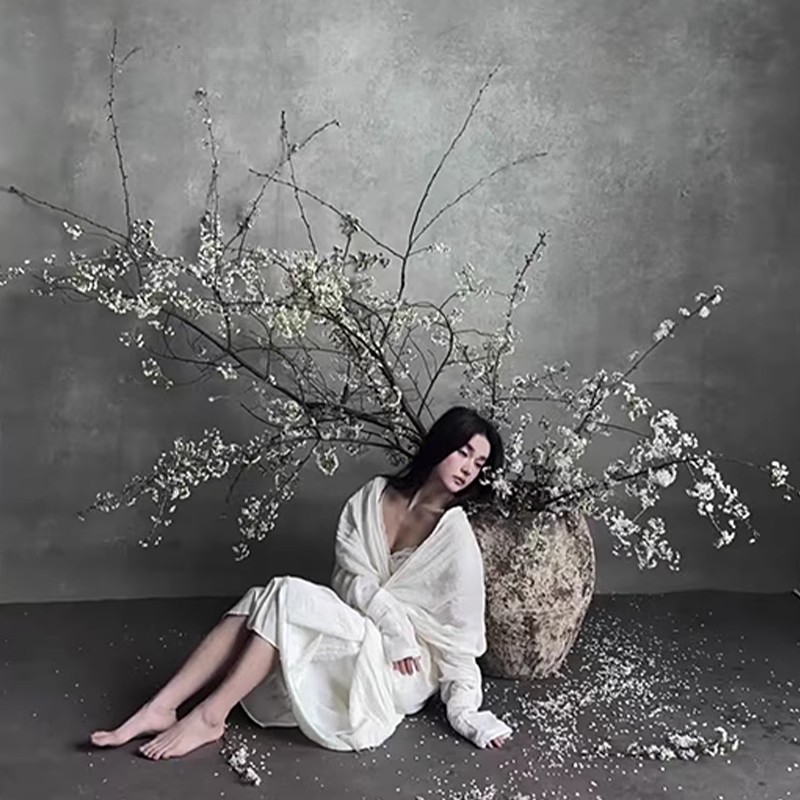 影棚婚纱灰色清冷风油画摄影背景布室内高级孕妇写真拍照背景纸