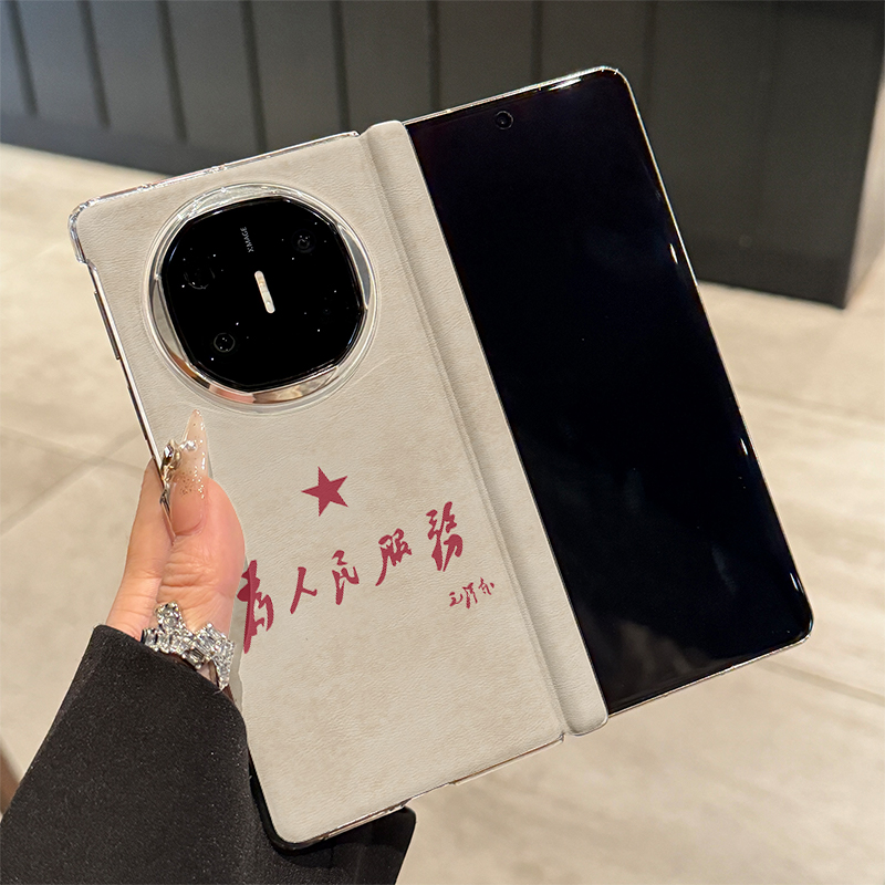 适用华为matex6手机壳新款为人民服务matex5折叠屏国风皮套X6典藏版防摔x5保护套皮质X3高级感男简约创意女款