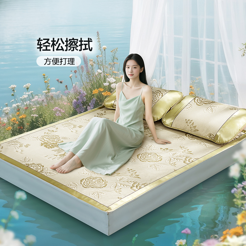 洁丽雅乳胶凉席冰丝席可水洗三件套夏季两用学生宿舍单人夏天席子