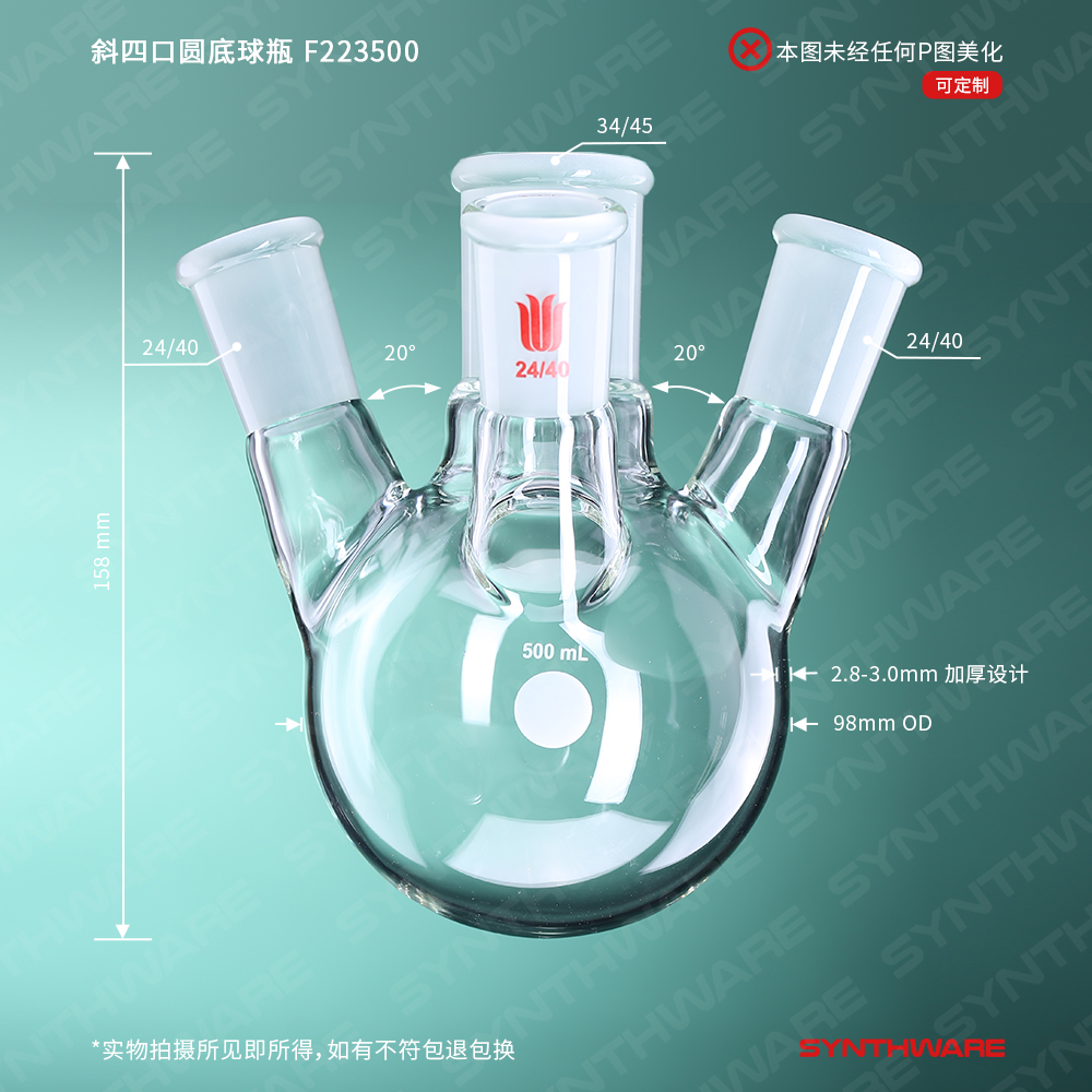 欣维尔斜四口圆底球瓶四口瓶斜口烧瓶四口烧瓶25/50/100/250/1000/2000/2000/5000ml四口圆底烧瓶四颈烧瓶