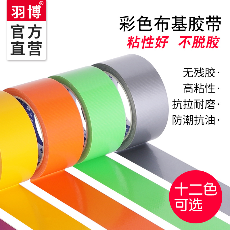 彩色布基胶带diy装饰摄影婚庆展会红黄蓝绿黑白棕银紫大力高粘补漏防水单面强力地板保护膜胶布地毯警示胶带