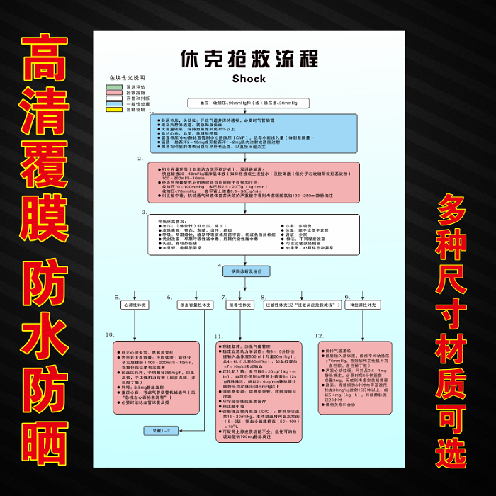 医院全套心肺复苏休克有机磷中毒心肌梗死过敏咯血抢救流程标识贴