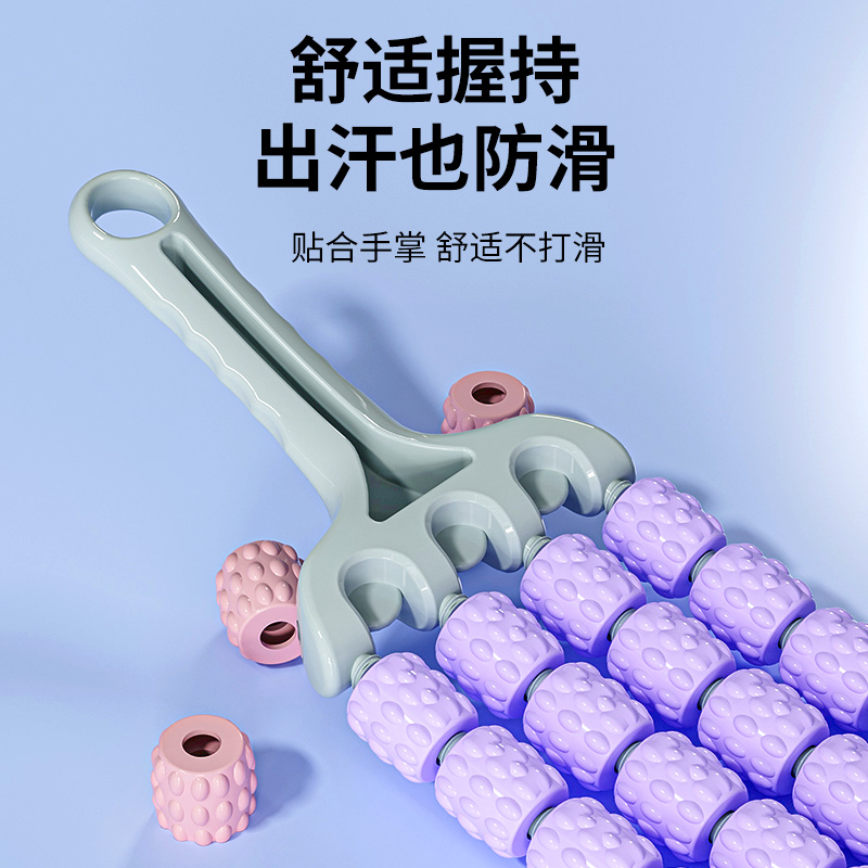 瑜伽狼牙按摩棒舒缓肌肉手持按摩棒四排全方位弯曲颈部腿部按摩器