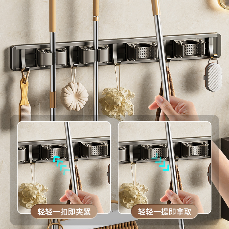 免打孔强力拖把壁挂夹神器挂钩扣收纳挂架卫生间扫把挂钩吸盘承重