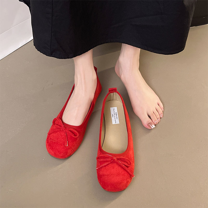 温柔芭蕾瓢鞋平底鞋法式糖果软底银色新中式红色单鞋秋小香风女鞋