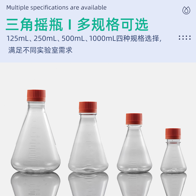 裕成实验无菌125ml250ml500ml1L三角摇瓶PC透气盖摇瓶 PETG细胞扩大培养用无酶摇瓶
