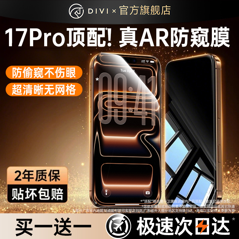 【顶配AR防窥】第一卫适用苹果17promax防窥钢化膜iPhone17手机膜16pro防偷窥15新款14贴膜13全屏12覆盖Air挡