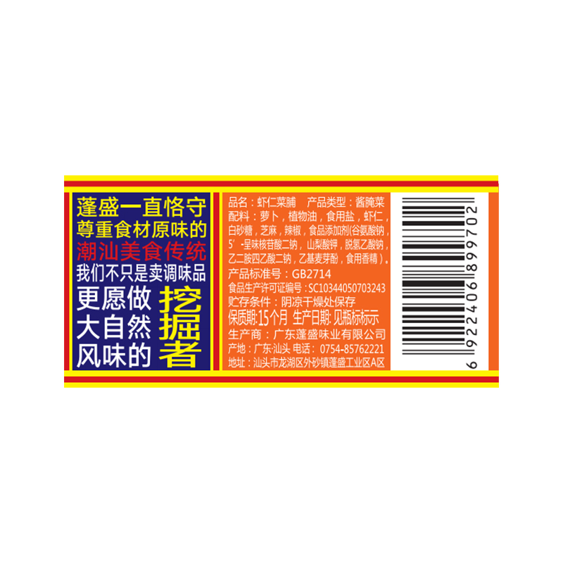 蓬盛虾仁菜脯195g瓶装萝卜干 开味下饭菜 佐粥潮汕特产下饭配粥