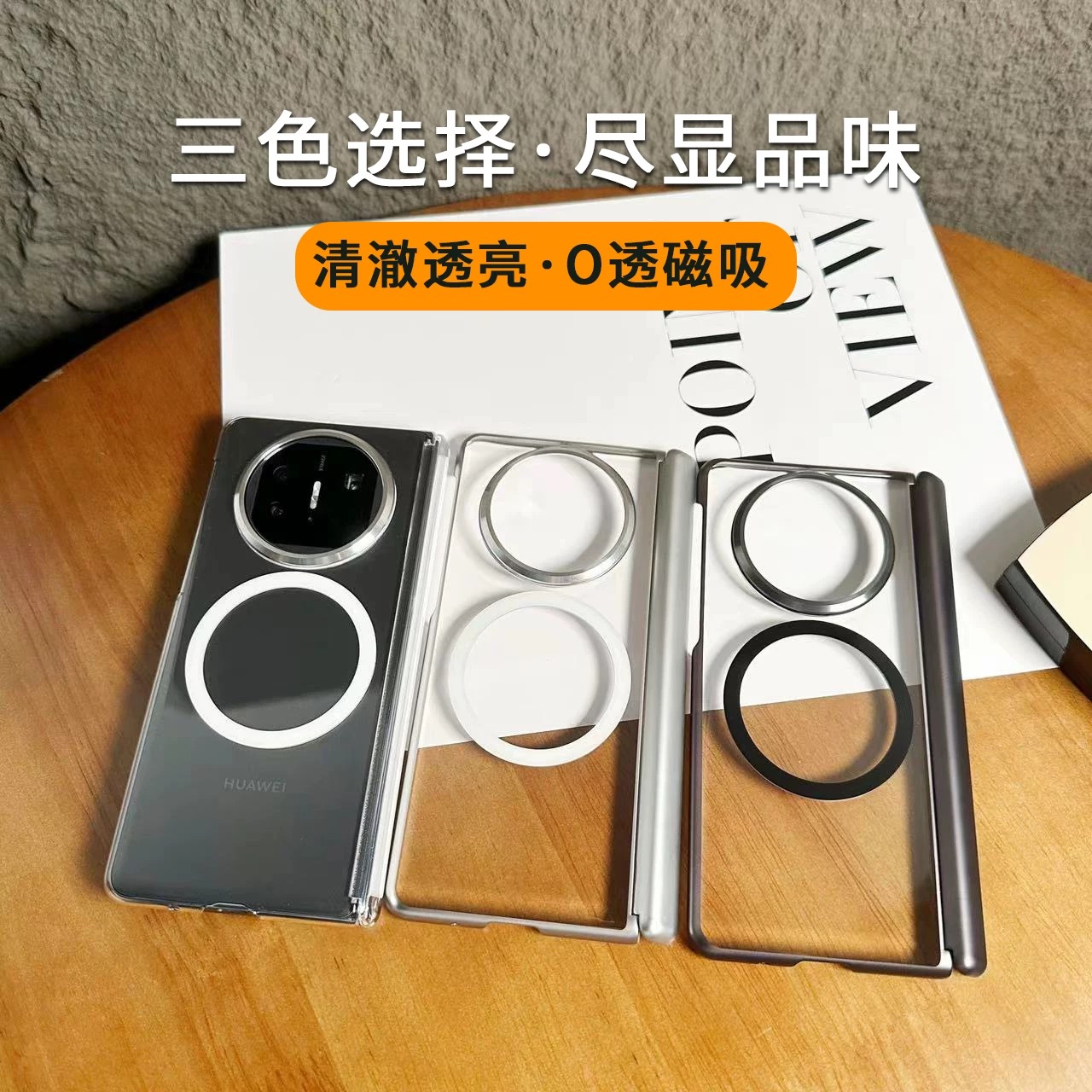 适用于华为matex5手机壳X5典藏版新款折叠屏超薄透明中轴铰链磁吸防摔保护套mateX6高端金属镜框X3男女款外壳