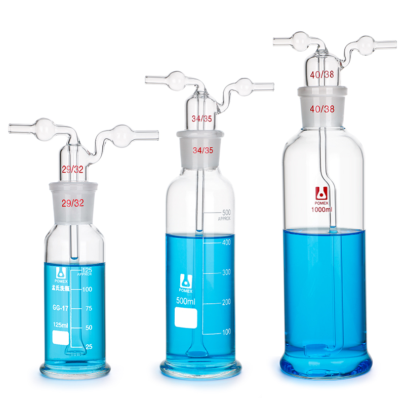玻璃砂芯臭氧洗气瓶曝气洗瓶气体扩散吸收瓶进气支管末端配中等孔隙砂芯板化学实验室用多孔式标准口