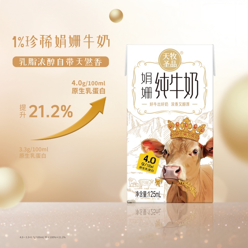 天牧圣品娟姗牛奶【4.0g 蛋白】 125ml*10 原生高钙 100% 纯牛奶