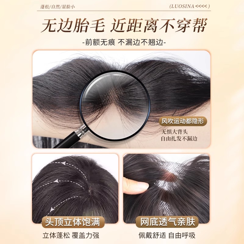 假发女片头顶补发增发量自然蓬松高颅顶八字刘海无痕假刘海补发片