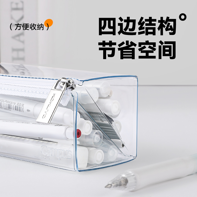 【可带入考场】KOKUYO国誉透明笔袋大容量campus中考高考学生考试用pvc笔盒初中生对开式简约文具盒