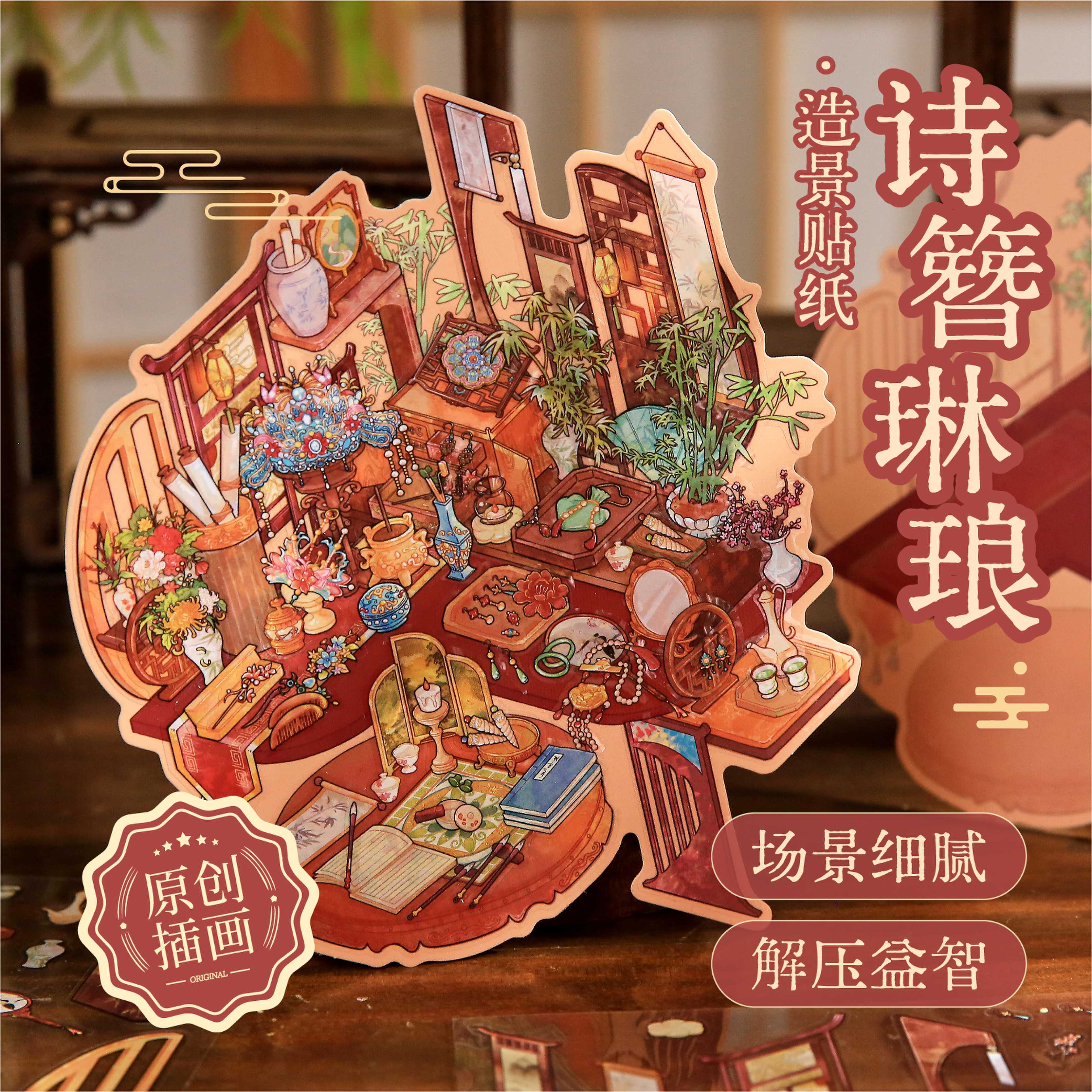 鎏金邂逅立体造景贴纸国风首饰油画微缩场景手工diy解压贴纸