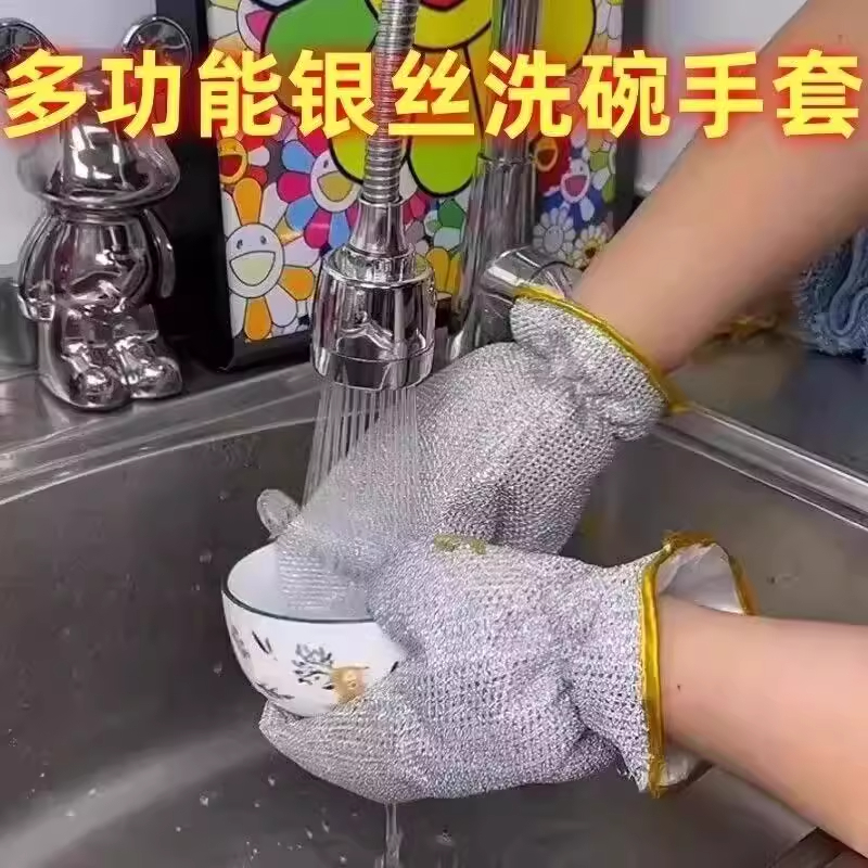 钢丝洗碗手套加长防水清洁隔热烫厨房刷碗女家用家务加厚耐用刷锅