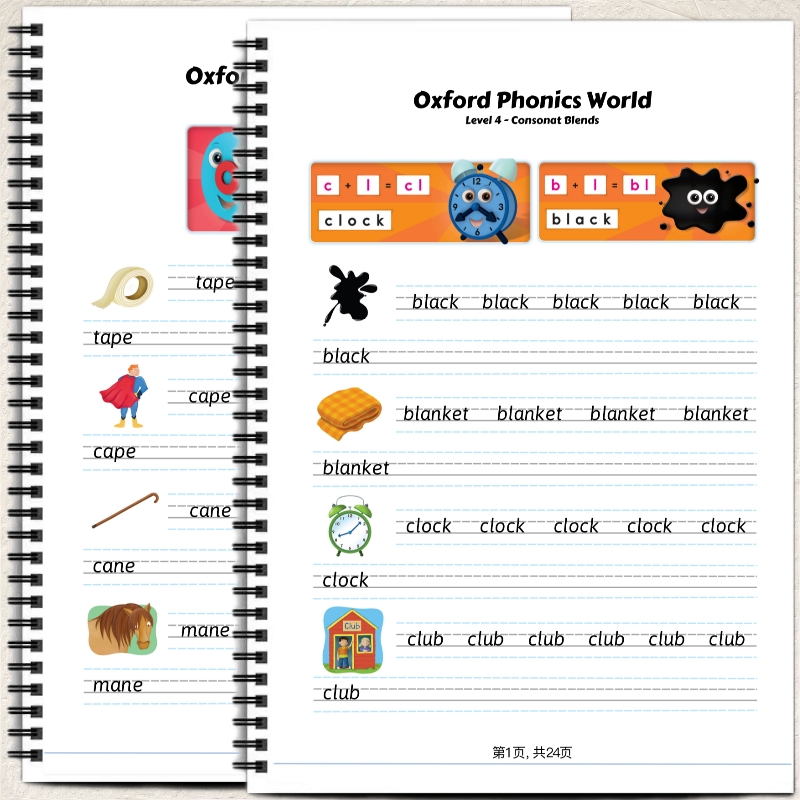 牛津英语自然拼读单词描红本英语必备Level 1Level 2Level 3Level 4Level 5自然拼读单词描红本听说读写学生练习强对发音单词记忆