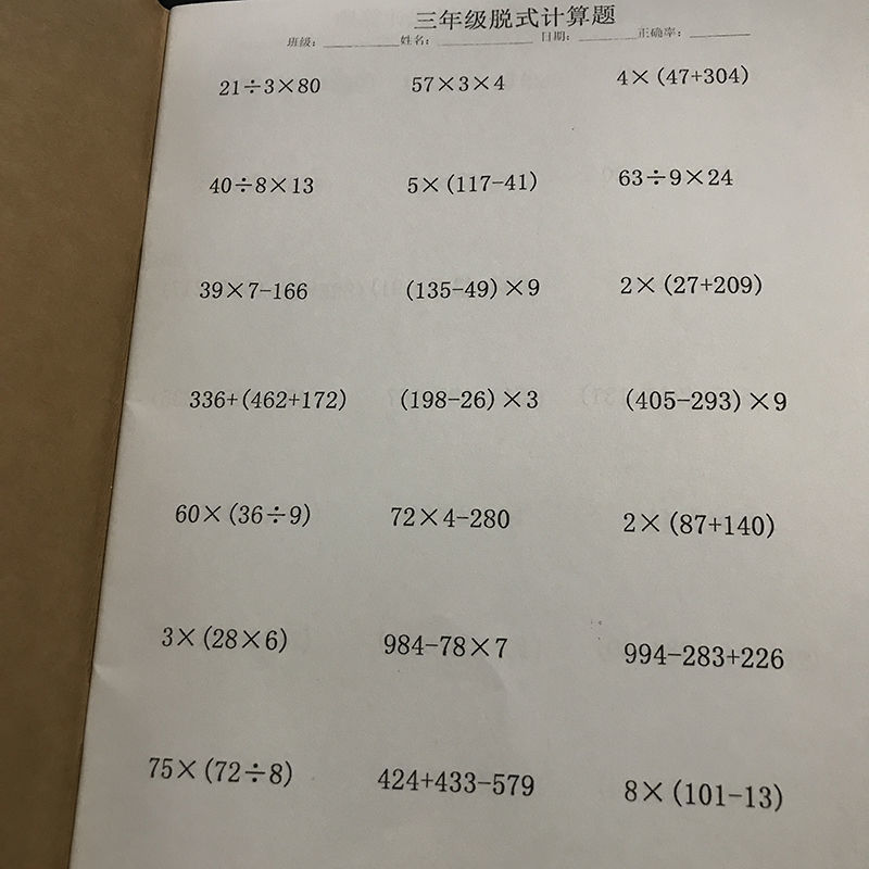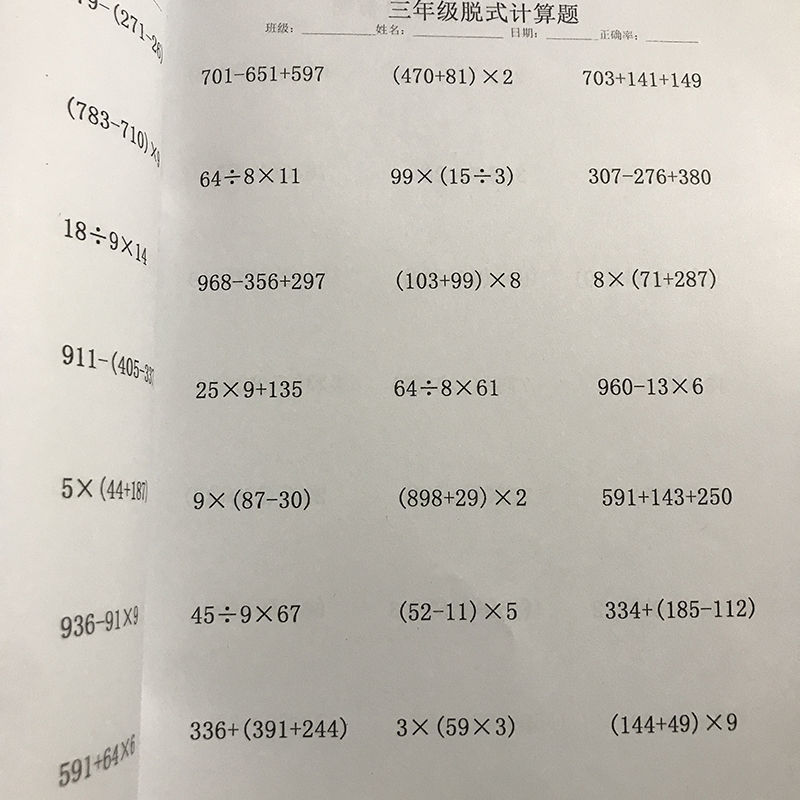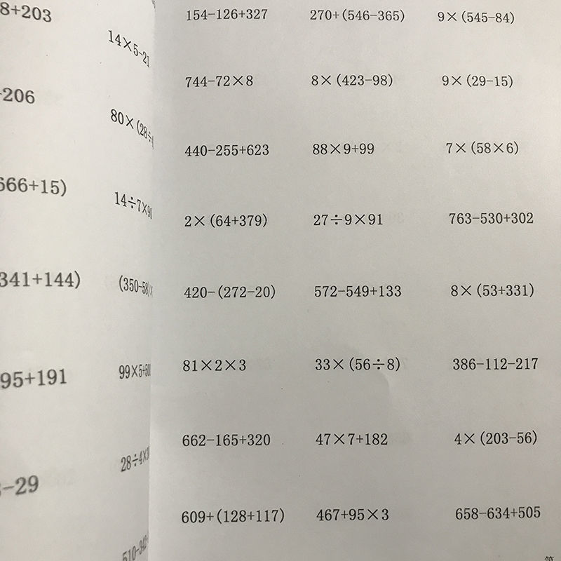 三年级脱式计算寒暑假多位数加减法乘法递等连加连减乘除练习本