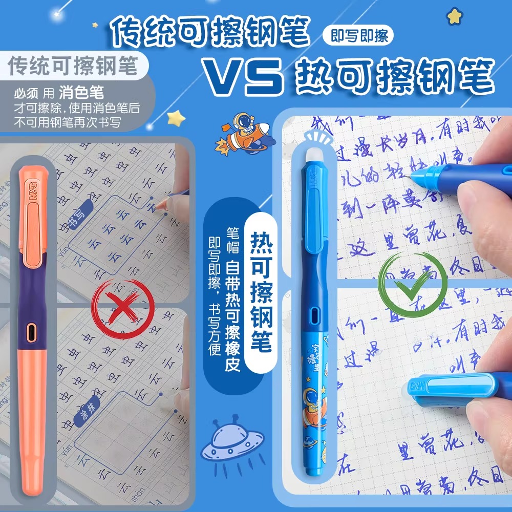 晨光优握热可擦钢笔小学生三年级专用热敏可擦墨囊可替换儿童二升三四卡通可爱初学者练字摩易檫橡皮擦的钢笔