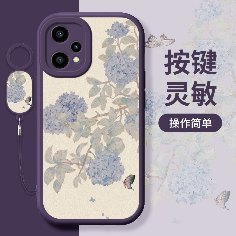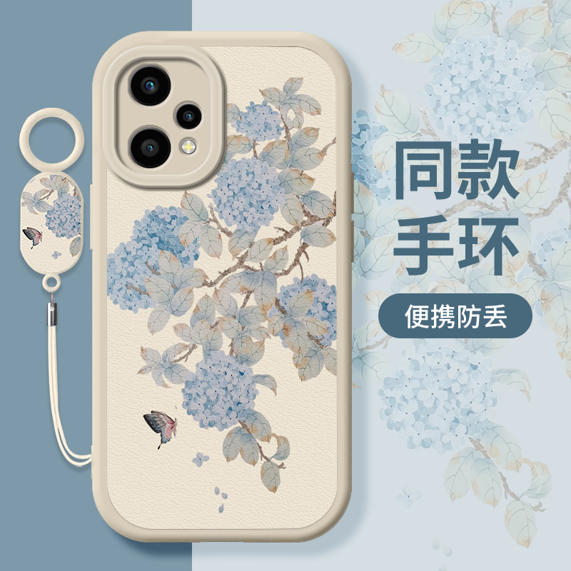 绣球花画适用realme真我Q5手机壳Q5pro新款Q5i小羊皮Q3高级Q3s简约Q3i小清新Q3pro中国风Q3pro狂欢版女保护套