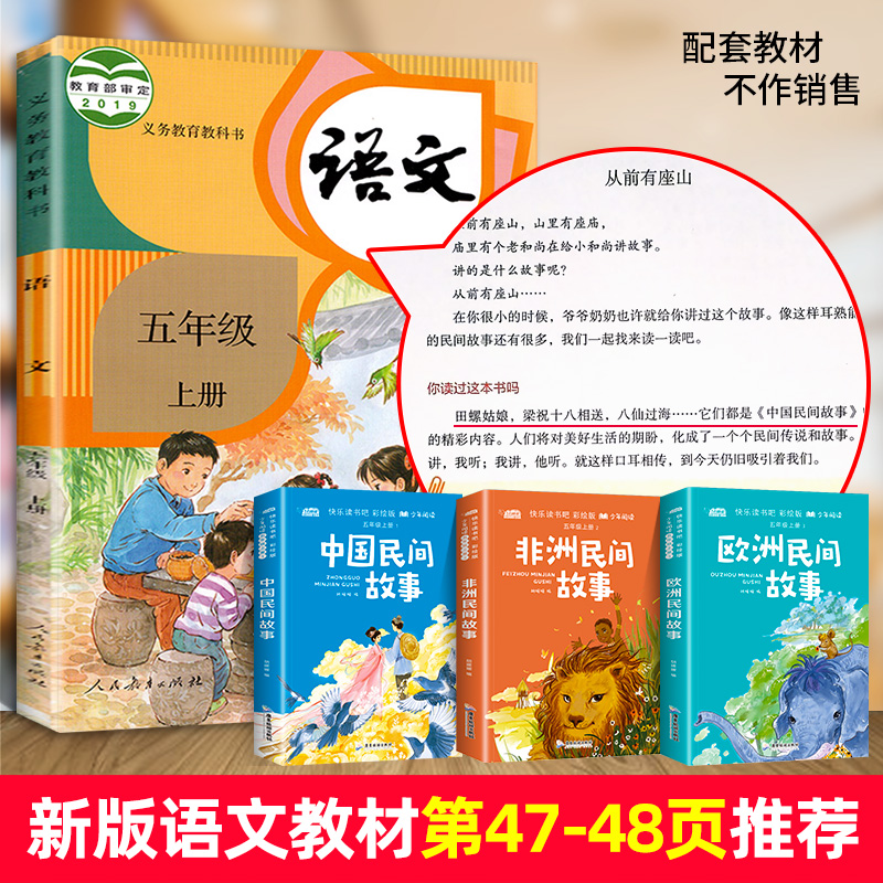 全套3册中国民间故事五年级上册必读的课外书正版欧洲非洲快乐读书吧5上推荐小学生阅读书籍暑假期经典书目老师列那狐姑娘新版