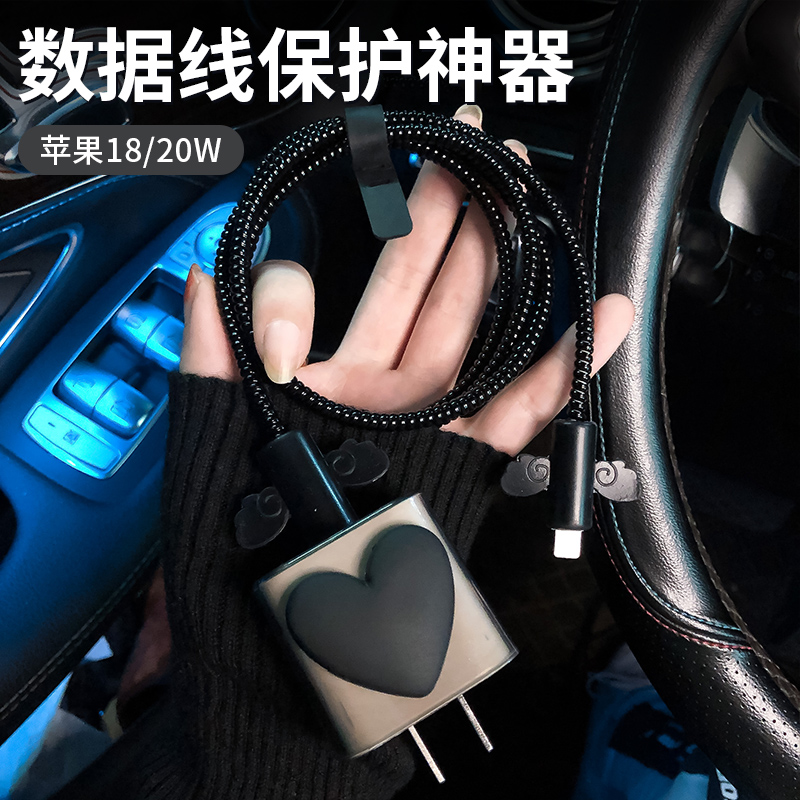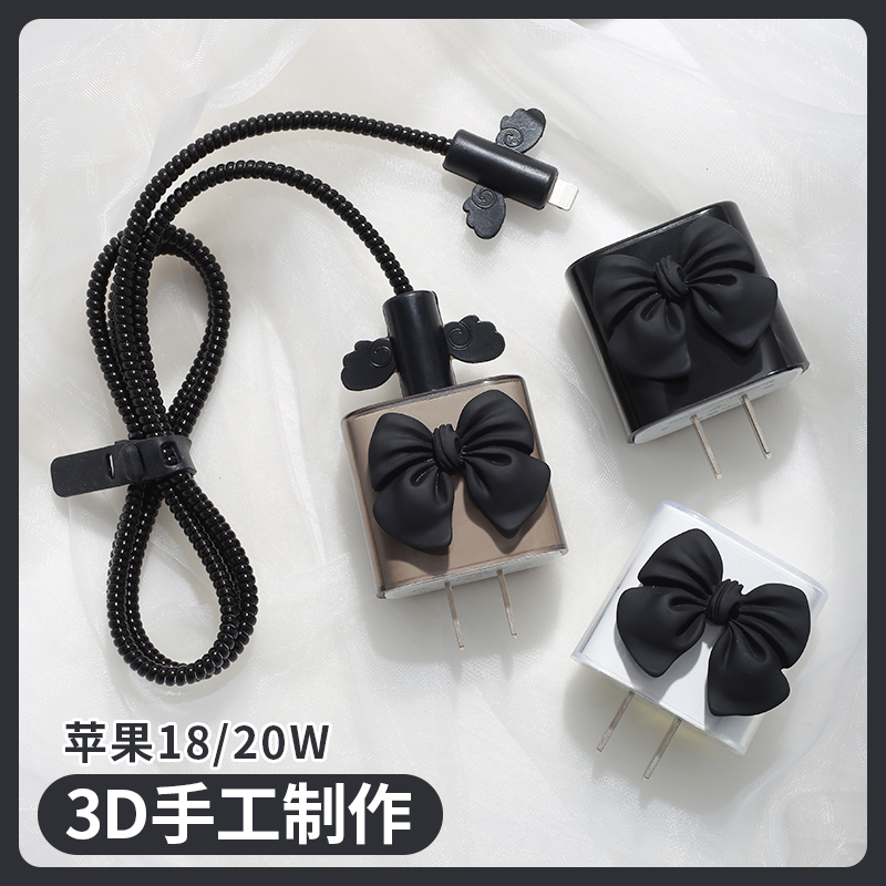 暗黑氛围感蝴蝶结女款苹果17promax充电器保护套15数据线的保护套18/20W充电线保护缠绕iphone防折断散热ipad