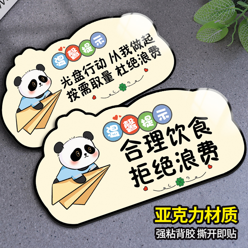 勤拿少取杜绝浪费提示牌贴纸自助餐厅自助区免费小菜标识牌节约粮食打包加一元用餐饭店食堂请勿浪费标语标示