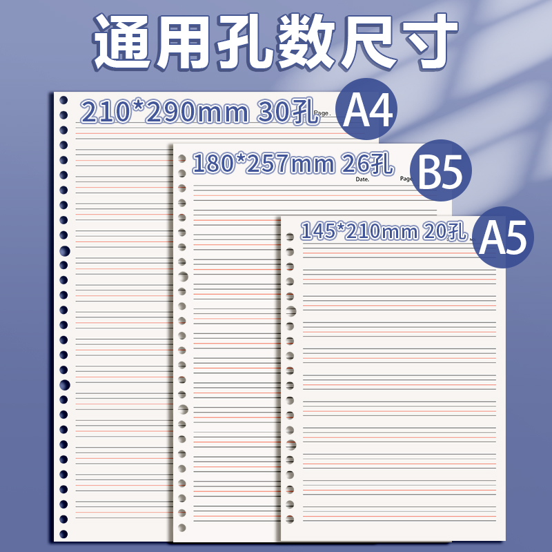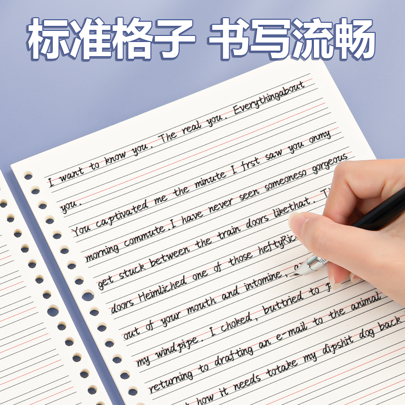 英语活页笔记本替芯替换纸可拆卸b5高颜值大容量26孔加厚四线三格a5小学初中生生专用单词句子默写听写本16k