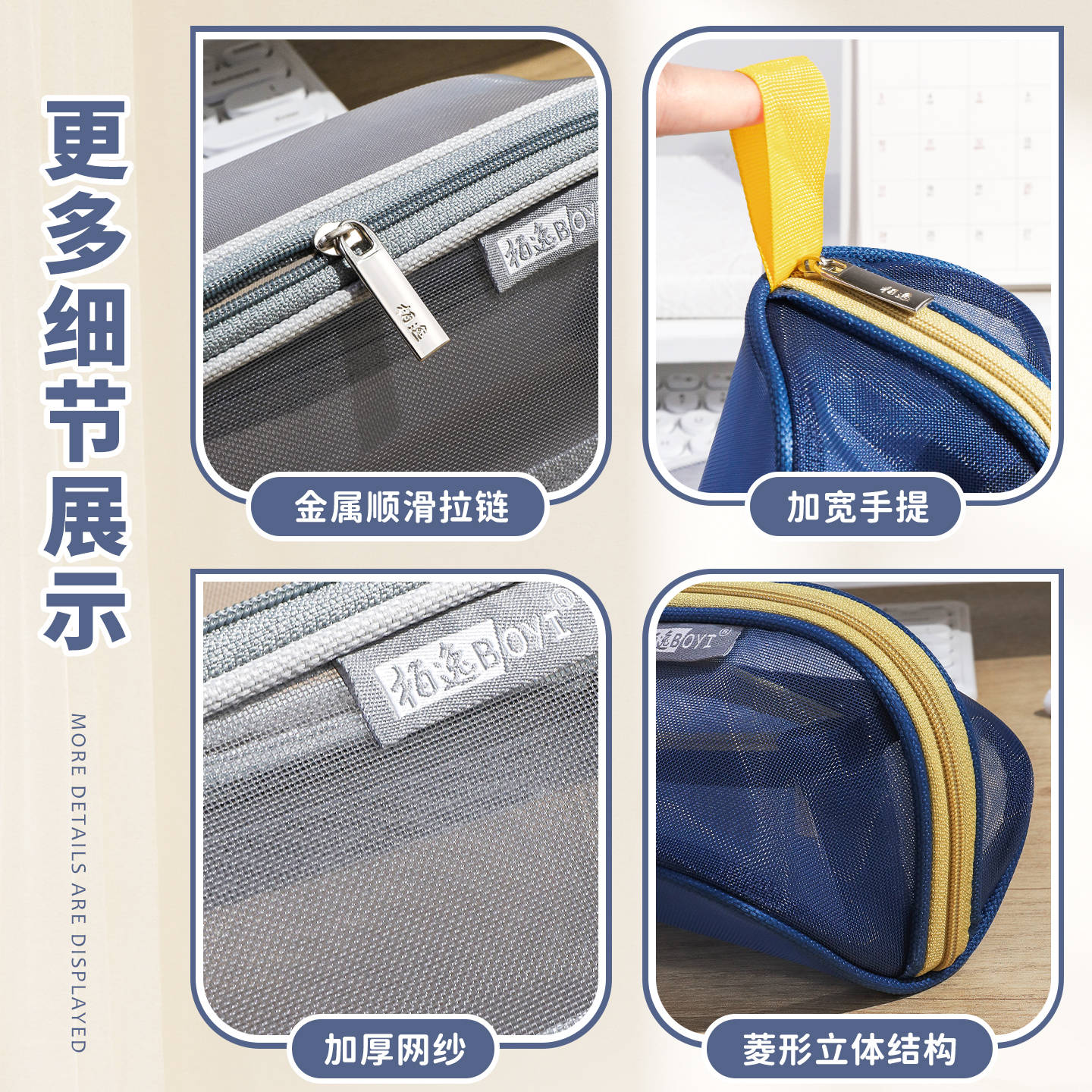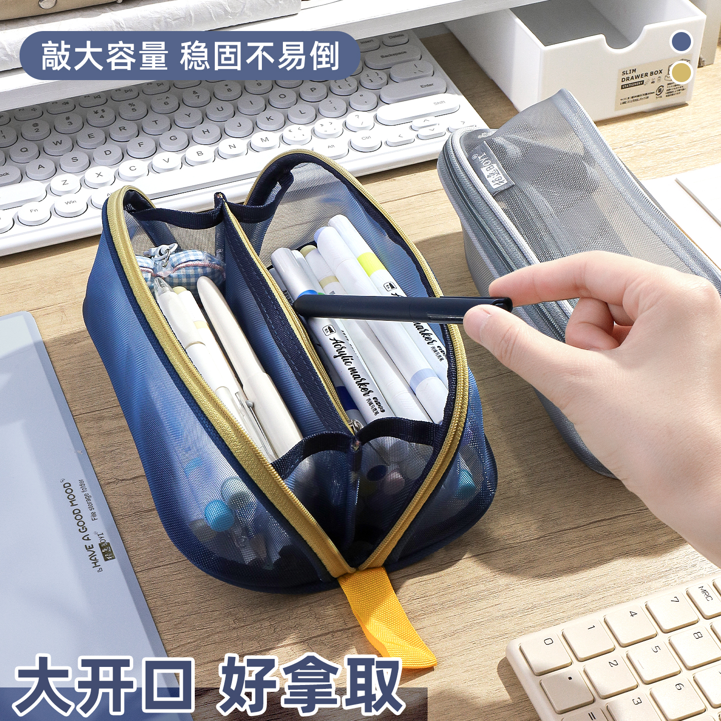笔袋男孩2025新款网红爆款网纱3层透明夹层大容量考试小学生初中生专用铅笔文具盒收纳袋女生简约高颜值ins风