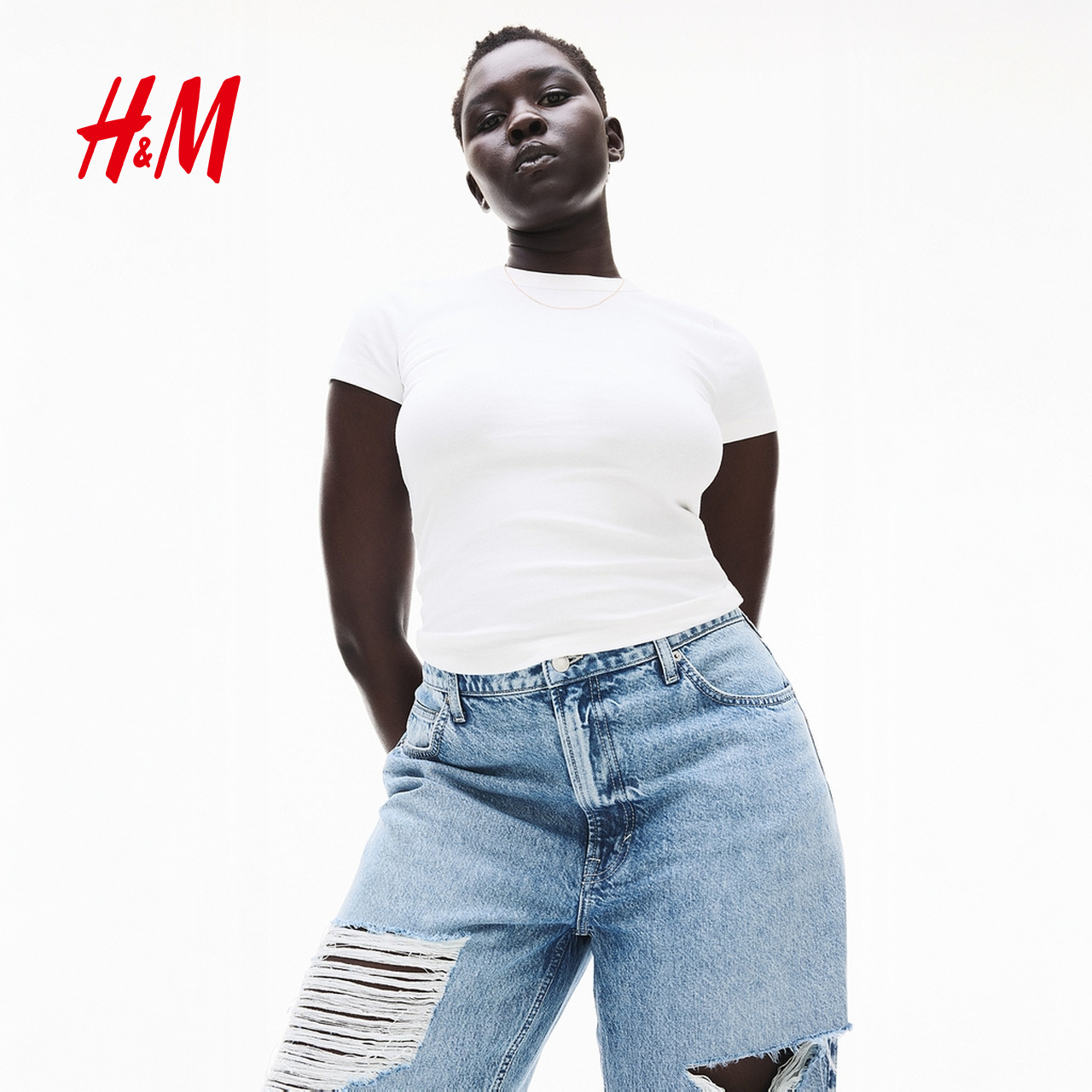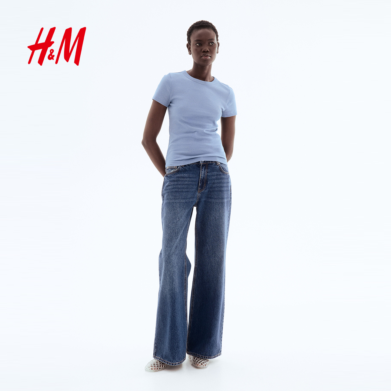 HM女装T恤2025年秋季女柔软舒适修身休闲直筒圆领短袖上衣1157799
