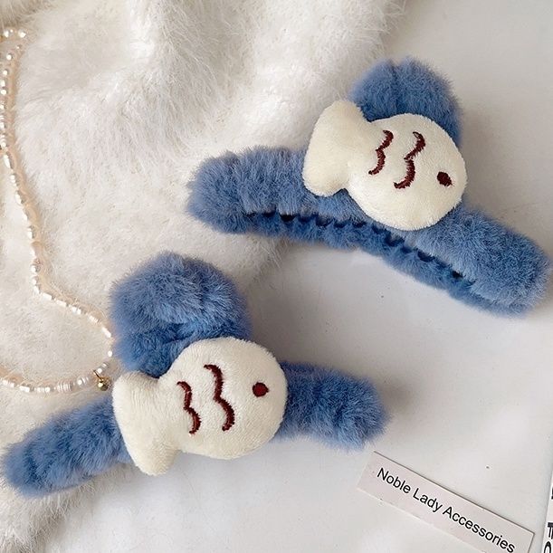 蓝色小鱼毛绒发夹女后脑勺可爱鲨鱼夹大号抓夹网红2024年夹子头饰