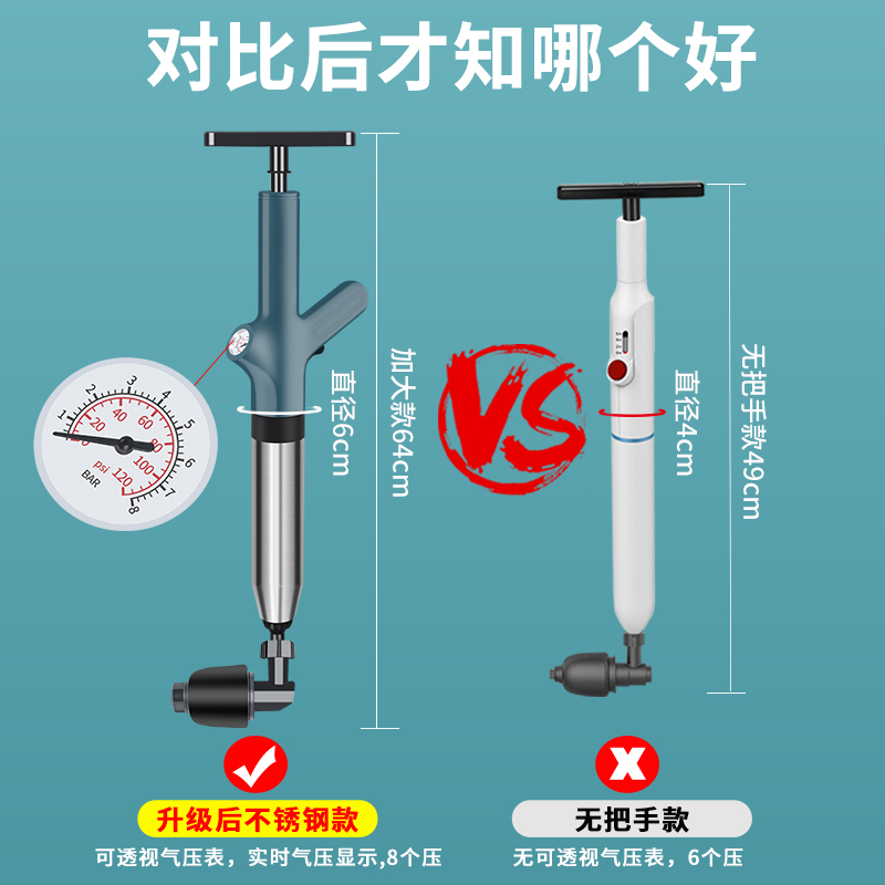 马桶一炮通疏通器新款管道疏通器不锈钢家用下水道地漏疏通马桶