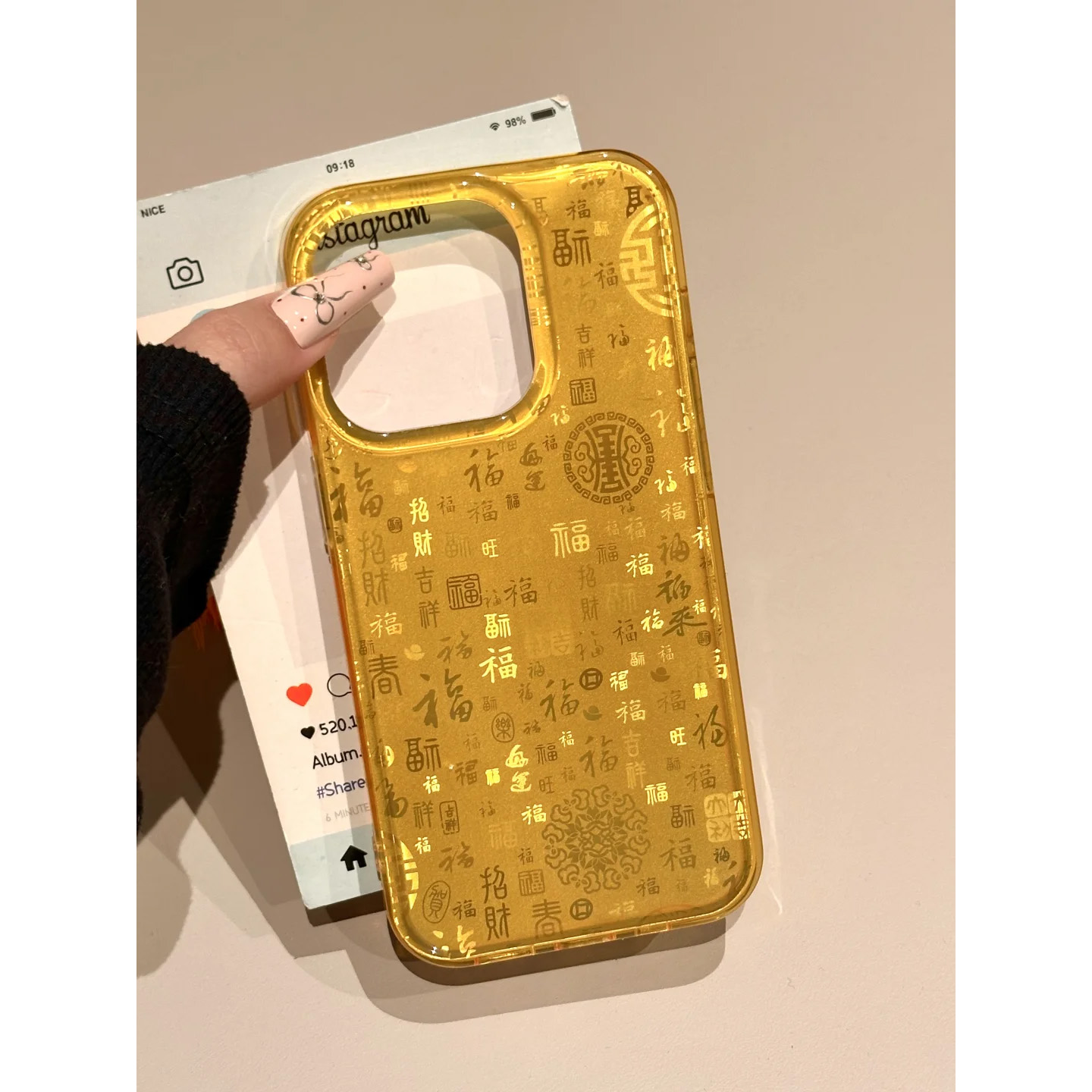 新中式金灿灿百福文字锡纸纹适用于iphone16promax苹果14手机壳15新款15pro女12情侣13pm双层硅胶创意防摔套