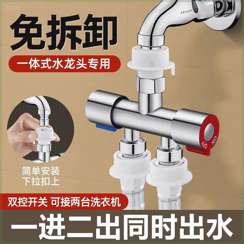 洗衣机水龙头一分二接头三通分水阀一进二出双头水分流器接口安装