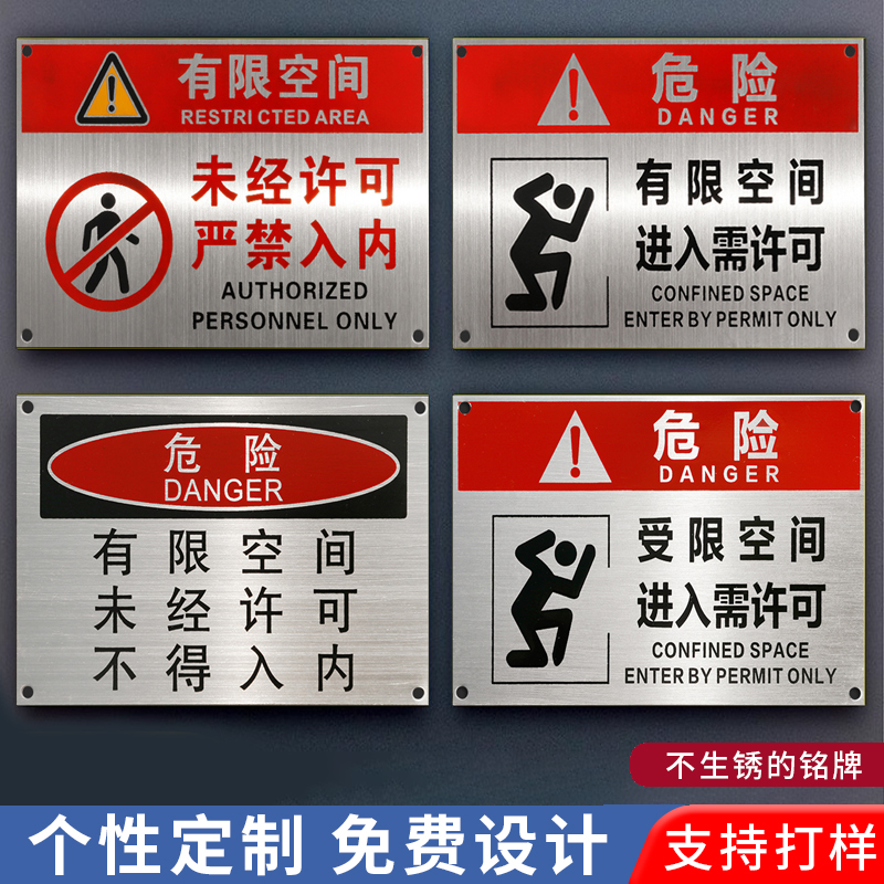 金属铭牌受限空间警示牌禁止入内危险警告标志牌有限空间警示标识牌不锈钢作业风险安全告知牌定制定制铝板