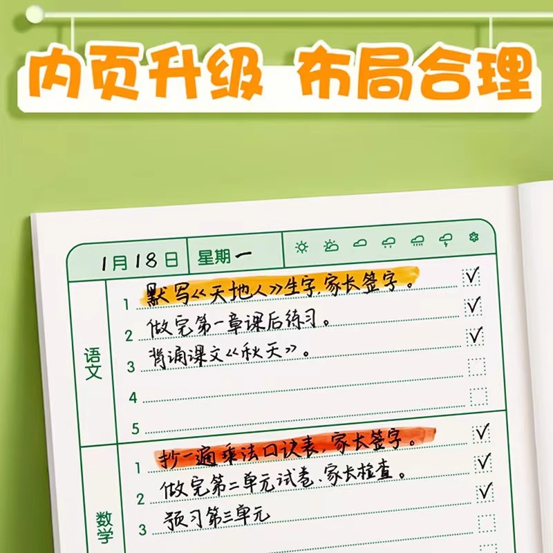 作业登记本小学生专用记作业本抄作业本一年级二三年级家庭作业