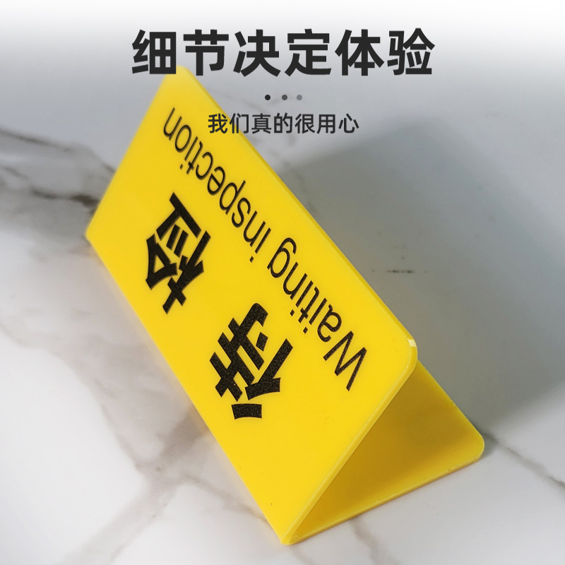 车间工厂质检牌区域标识牌设备状态管理标识牌产品检验不合格品待检区双面三角台卡定制做亚克力台签V型桌牌