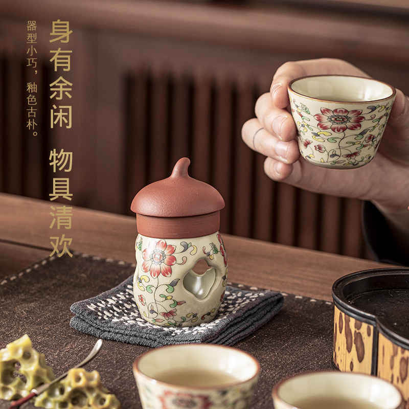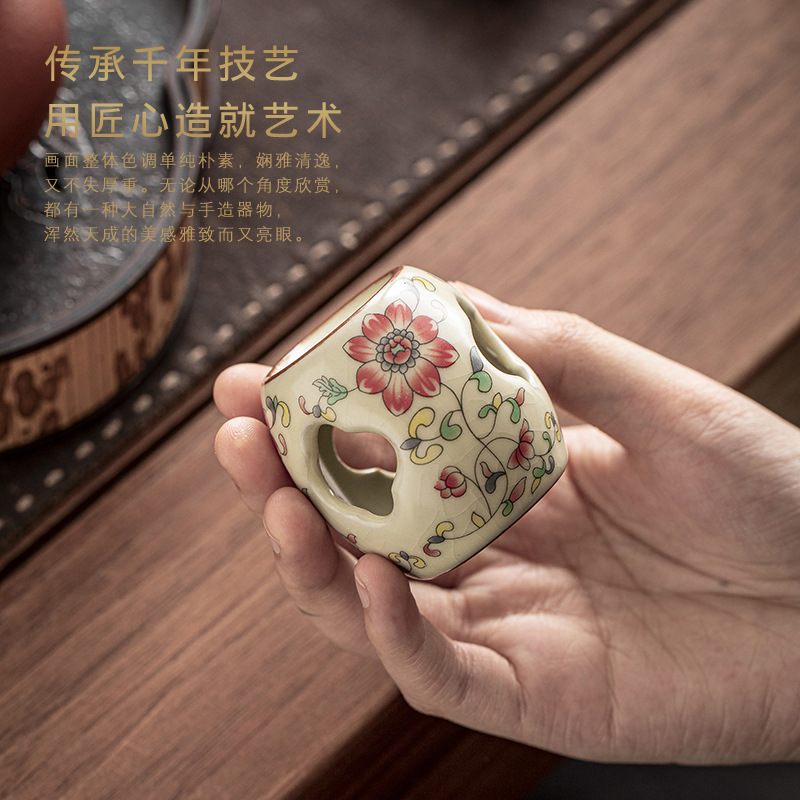 汝窑茶壶盖碗盖子配件黄汝青花描金盖置陶瓷壶盖托功夫茶道零配