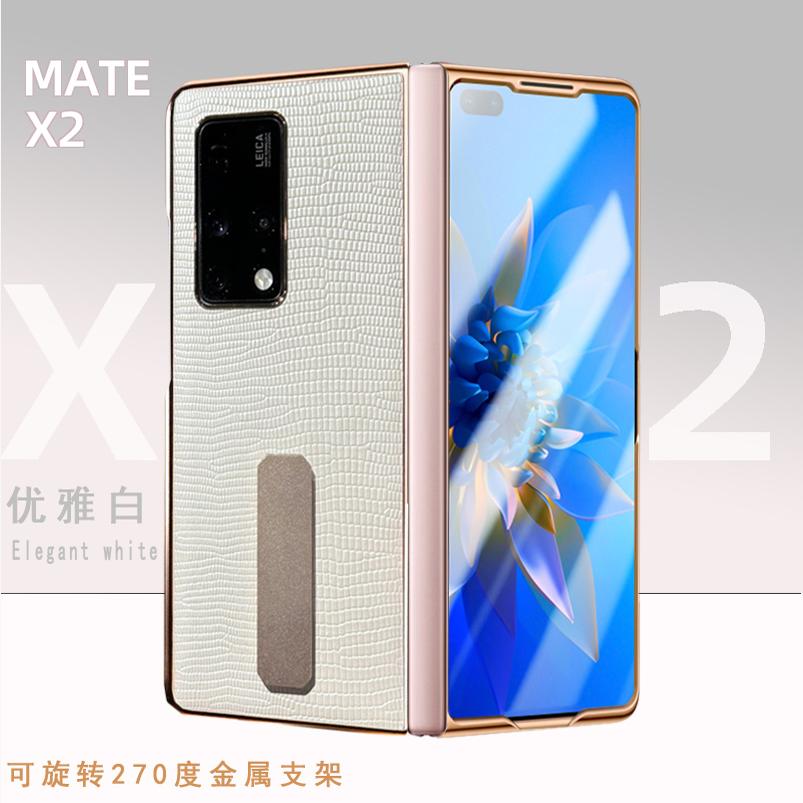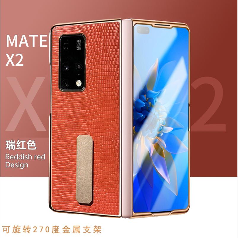 适用华为matex2手机壳电镀新款蜥蜴纹MateX2折叠屏真皮保护套秒变XT金属旋转支架外壳壳膜一体小蜥蜴纳帕皮套