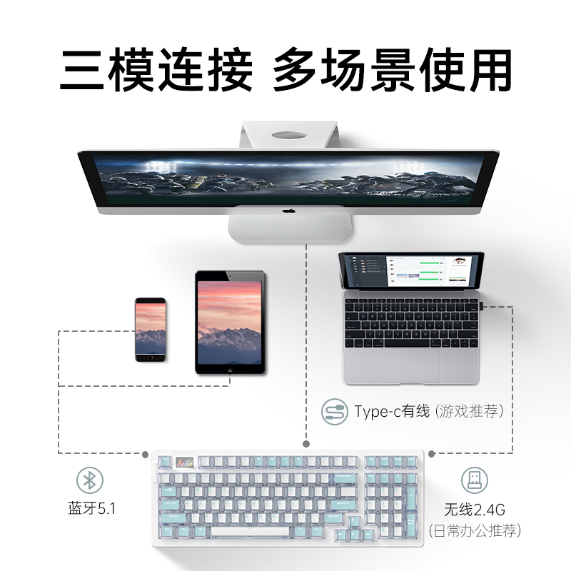 SKN青龙三模机械键盘gasket结构客制化无线98热插拔RGB游戏办公