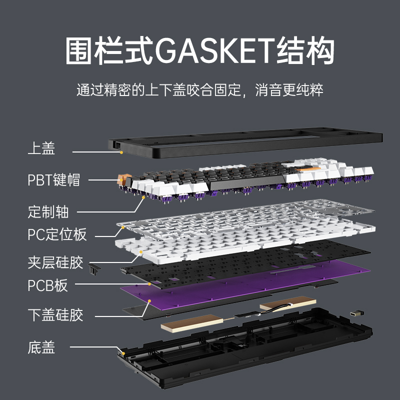 SKN青龙三模机械键盘gasket结构客制化无线98热插拔RGB游戏办公