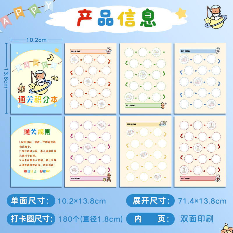 通关积分本儿童好习惯养成自律打卡盖章本小红花奖励贴纸印章收集本学习记录读书暑假计划表家庭积分卡奖励卡